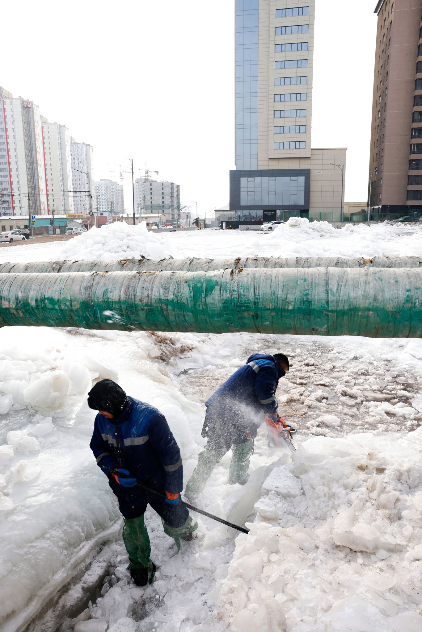 “Дэнжийн 1000”-ын нэгдүгээр сувагт техник орох боломжгүй байршилд ажилчид гар хөрөөгөөр цас, мөсийг хөрөөдөж, гарц гаргалгаа хийж байлаа. Мөн гүүрэн гарцыг дагасан 20 орчим метр том хэмжээний кабелийн утсыг зөвшөөрөлгүйгээр татсан нь ажил явуулахад хүндрэл үүсгэж байсан юм. Яг гүүрэн доорх хаалттай хэсэгт агааргүйдэх эрсдэлтэй, битүү орчинтой учраас харагдах орчин хязгаарлагдмал, ажилчид ээлжлэн орж ажиллахаас өөр боломжгүй, мөн дээр дурдсан цахилгааны кабелийг хөндөх эрсдэлтэй учраас суваг, гарц, гарам гаргахад хүнд нөхцөлд ГУББГ-аас ажиллаж байна. Гэсэн ч нөхцөл байдлыг шийдэж, халиа тошин халихаас сэргийлсэн арга хэмжээнүүдийг авсаар байна.