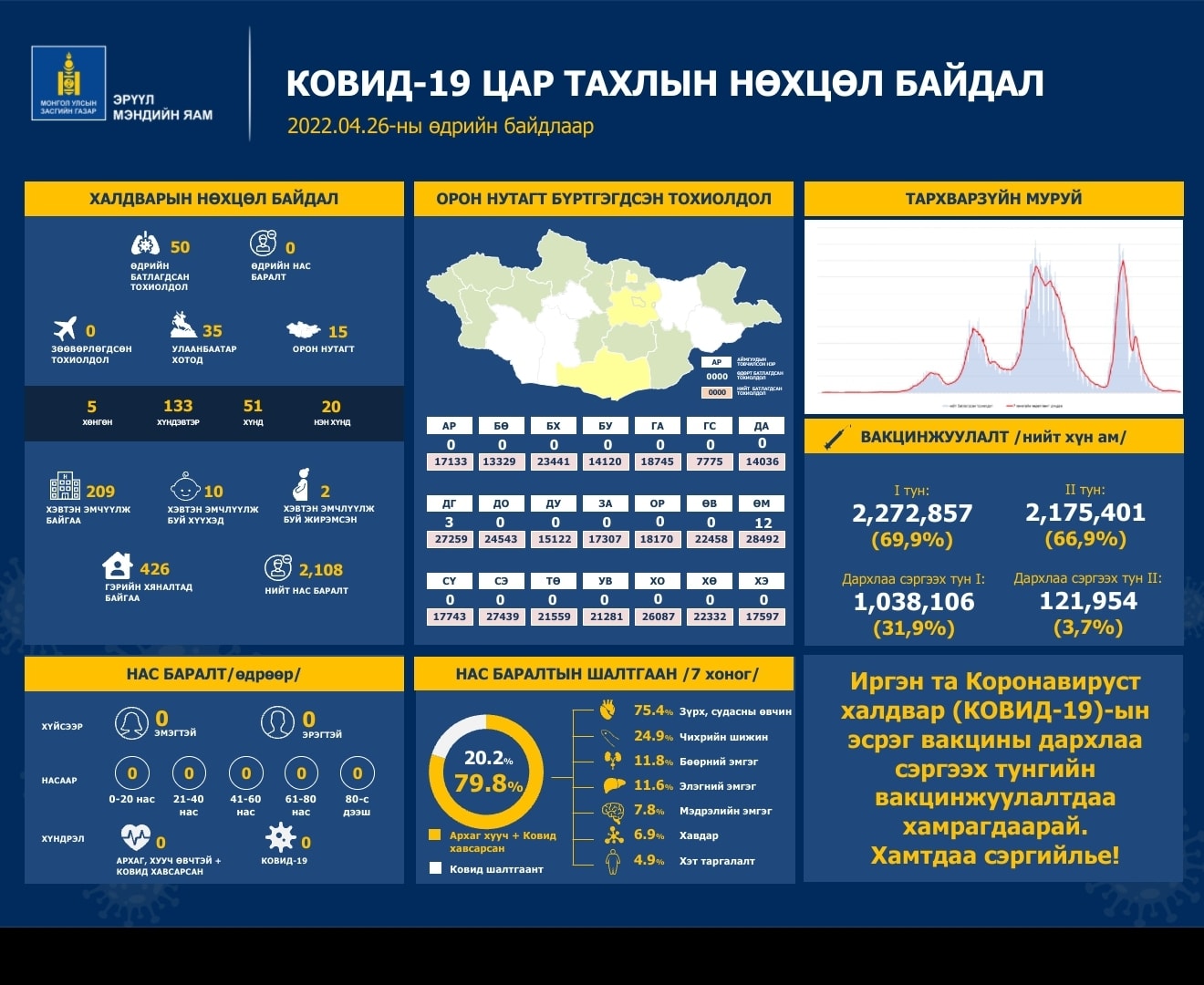 Бусад Улсын хэмжээнд корона вирусын 50 тохиолдол бүртгэгдлээ admin 2022-04-26 Continue Reading Previous: АРИУН ЦЭВРИЙН БАЙГУУЛАМЖУУД АШИГЛАЛТАД ОРЖ ЭХЭЛЛЭЭNext: БАРИЛГА, ХОТ БАЙГУУЛАЛТЫН ЯАМНААС ЭРҮҮЛ, АЮУЛГҮЙ АЖЛЫН БАЙРЫГ ЭРХЭМЛЭГЧ БАЙГУУЛЛАГУУДЫГ ШАЛГАРУУЛЛАА Leave a Reply Cancel replyYour email address will not be published. Required fields are marked *Comment * Name * Email * Website Related News Бусад Испанид гал тэрэгний ослоор 20 гаруй хүн нас баржээ Dulguun Ulziitogtokh 2026-01-19 Бусад Израилын эмнэлгийн сэргээн босголтод 100 сая доллар хандивлажээ Dulguun Ulziitogtokh 2025-11-03 Бусад Трамп, Пакистан, Египетийн Шарм-эль-Шейхэд болсон “Энх тайван 2025” хэлэлцээний цаана нуугдсан стратегийн өөрчлөлтүүд admin 2025-10-21