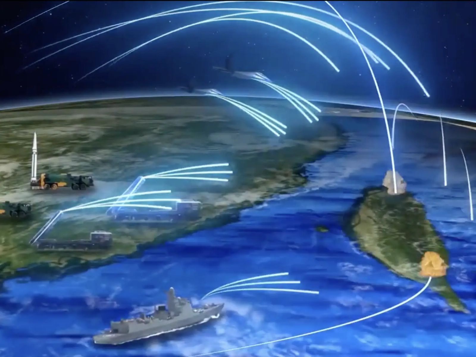 Дүрс дээр Хятадын эх газраас, агаараас болон тэнгисийн усанд байрлах байлдааны хөлөг онгоцнуудаас Тайвань арал руу нэгэн зэрэг пуужингийн цохилт өгч буйг харуулсан байна.