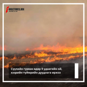 Сүүлийн гурван өдрийн хугацаанд Увс аймгийн Бөхмөрөн, Дорнод аймгийн Булган, Чулуунхороот, Чойбалсан, Гурванзагал сум, Булган аймгийн Хутаг-Өндөр, Сүхбаатар аймгийн Эрдэнэцагаан цагаан суманд нийт есөн удаагийн ой, хээрийн түймэр бүртгэгдлээ.